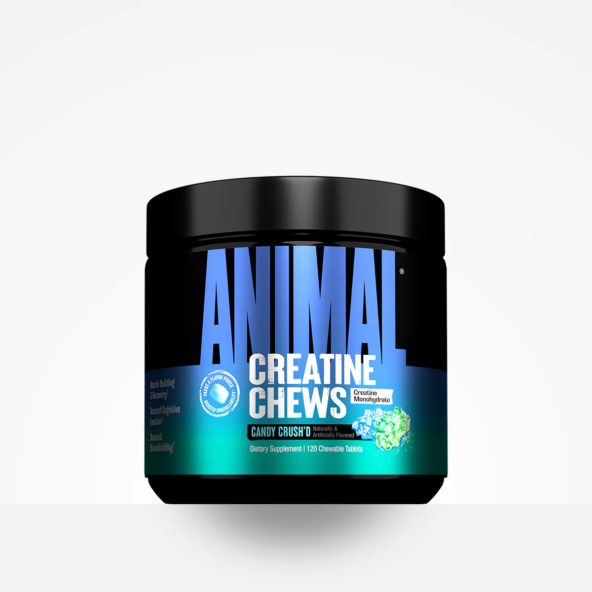 Animal Creatine Chews gives you the power of creatine monohydrate in delicious chewable tablets. Each serving contains 5g of creatine monohydrate and sea salt for absorption and pumps. With four flavors to choose from, Animal Creatine Chews is the convenient way to build muscle, enhance endurance, support muscle recovery, and build strength. No water, shakers, no mess.